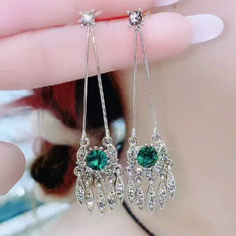 Classical Green Diamond Tassel Earrings